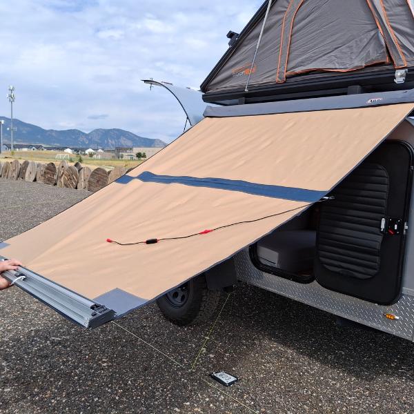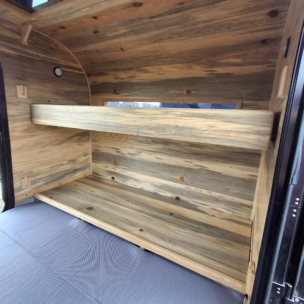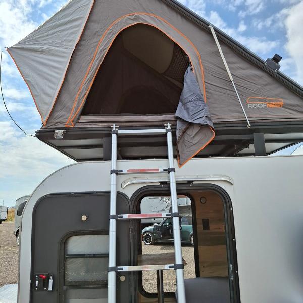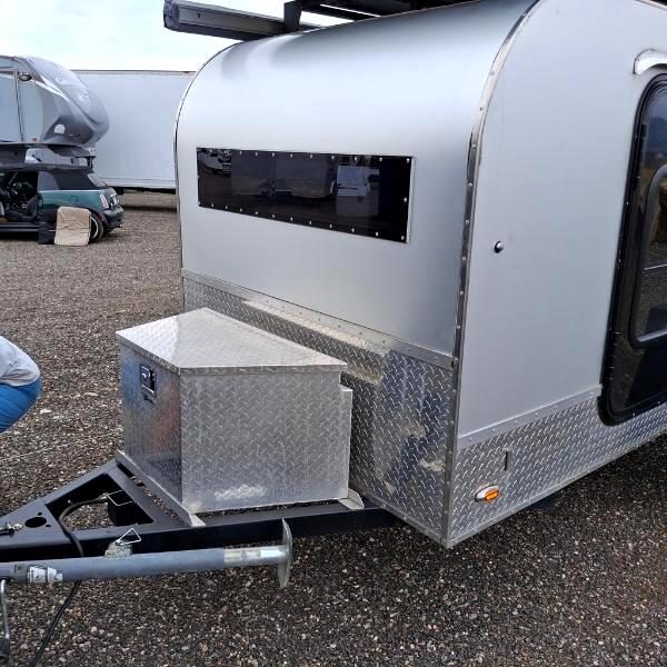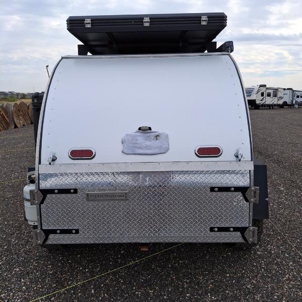 3,500 lbs. Torsion Axle, Manual Tongue Jack, Front Mounted Diamond Plated Storage Box, (2) Entry Doors with Slide Windows and Portable Privacy Shades, Beautiful Pine Wood (Beetle Kill) Wood Interior and Kitchen Compartment, Floor Storage Compartments, Interior Max Ceiling Fan, Queen Bed plus (2) Fold Down and Up Bunks Beds 5’ in Length, Interior and Exterior LED Lighting, Manual Patio Awning, Pop-Up Roof Tent, 33” Off-Road BF Goodrich Radial TA Tires with Steel Wheels, Portable Goal Zero Yeti 400 Chargeable Battery Power Station with 100+ Watt Hours, 12V + AC and USB Ports, 11.6 gal. Fresh Water Tank with Pump and Rear Kitchen Sink, Side Mounted Exterior Shower with Hot & Cold Controls, 10lbs. Exterior Propane Tank, 2” Bike Rack Bumper Hitch. 2nd Owner since 2021, Very Well Maintained and in Excellent Working Condition.