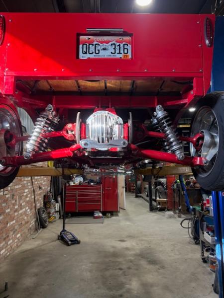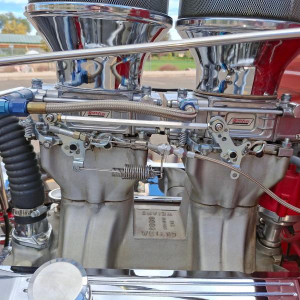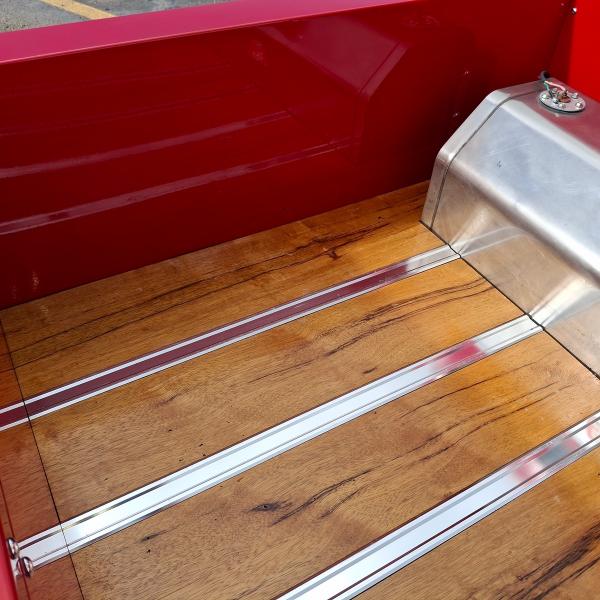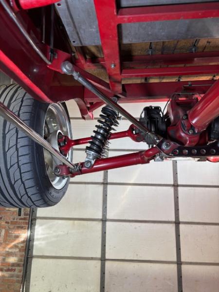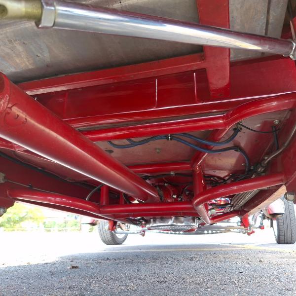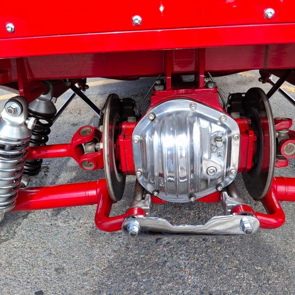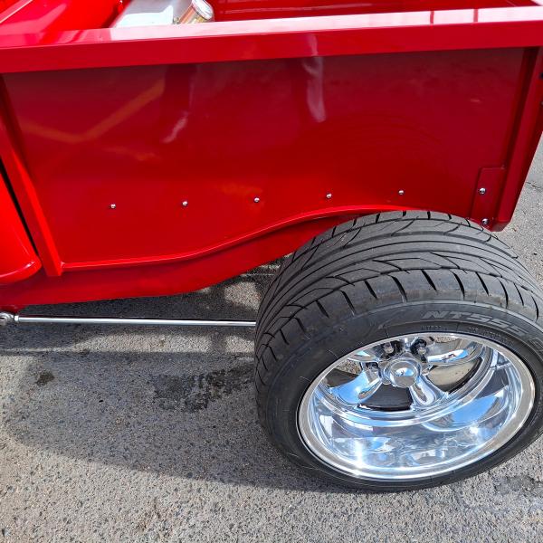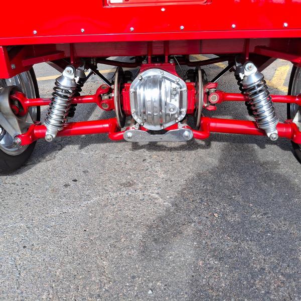 All Steel Body, 383 Stroker V8 Motor with 4,308 Miles on the Tach, 3-Sp Auto 400 Turbo Transmission and 9 Bolt Jaguar Rear End with Coil Overs, Single Axle Front End with Shocks and Chrome Stabilizer Bars, Dual Quick Fuel Tech Carburetors with Moroso Air Cleaners, Custom Headers, Aluminum Radiator with Fan, MSD Electronic Ignition, New Water Pump, 4-Wheel Disc Brakes, American Racing Wheels with Newer Natto 285/40ZR/17 Rear Tires and 2 Year Old Continental 145/85R/15 Front Tires, Chrome Side Mirrors, 15 Gallon Aluminum Fuel Tank, Leather Interior, Hane-Line Gauges, Grant Steering Wheel, No Power Steering, No Power Brakes, No AC and No Stereo but there’s a Kill Switch! Seats are not Adjustable and there’s No Seat Belts. If you’re 6’ or Taller, You’re NOT going to Enjoy Driving this Pickup.