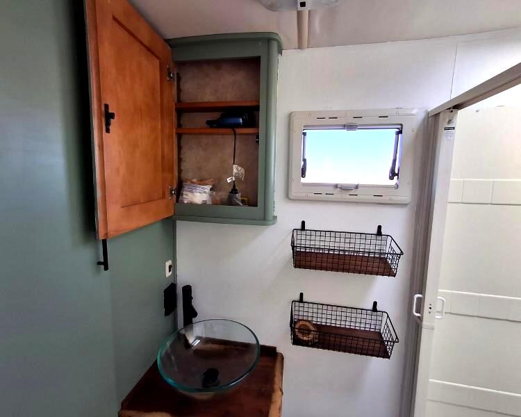 Manual Patio Awning, Upgraded Aftermarket Flip Out Windows Installed by 1st Owner and Skylight in Bunk Ceiling, Large Front Safety Grill with LED Lighting, 3,500 lbs. Tow Hitch, Backup Camera with Dash Monitor, Swivel Driver and Passenger Seats, Custom Sleeper Sofa, 3-Burner Stove, 2-Door Dometic Electric and Propane Refrigerator (No Ice Maker), Custom Kitchen Countertop with New Extension Faucet and Sink, Microwave plus Pantry Closet. Large Shower with Upgraded Faucet Head, Foot Flush Plastic Toilet, Glass Bowl Sink and Unique Wood Sink Countertop and Wall Paneling!